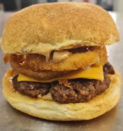 Beef Patty, Crumbed Onion Rings, American Cheese, BBQ, Aioli