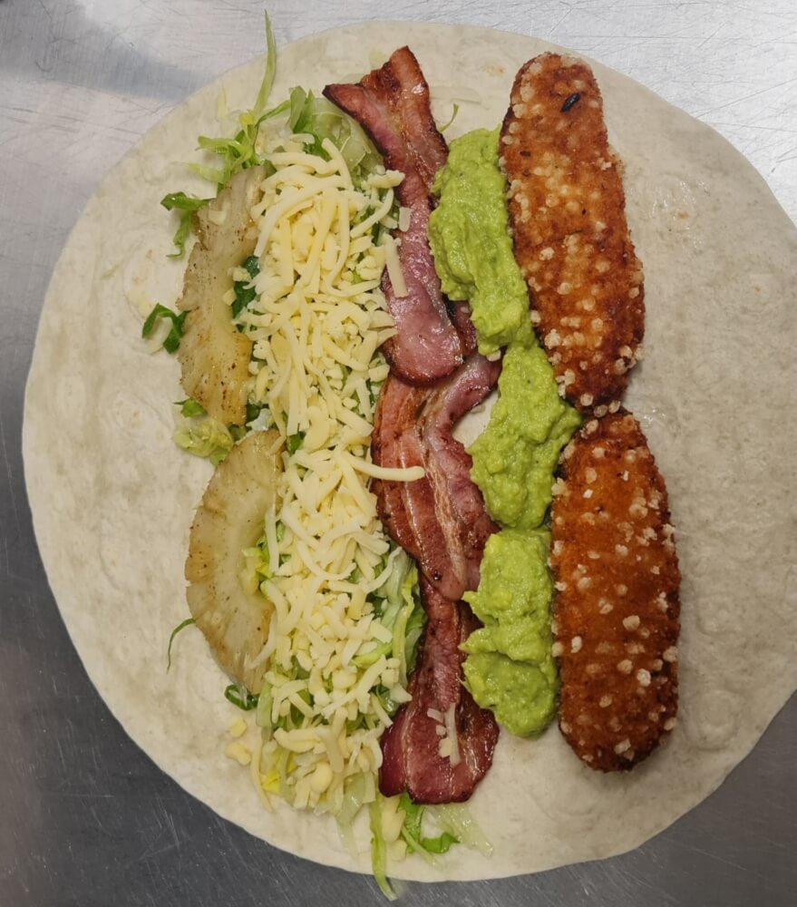 Chilli Tenders, Lettuce, Avocado, Bacon, Pineapple, Cheese