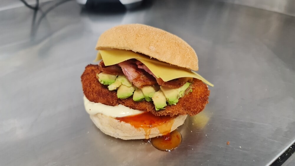 Snitzel Bacon Avo Sour cream Cheese Sweet Chilli Sauce